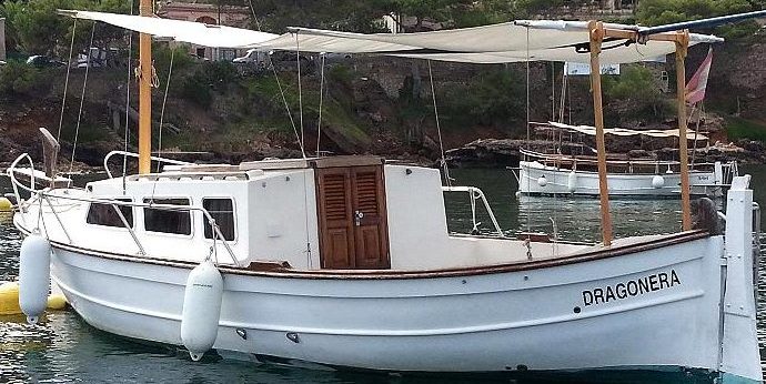 Bateau classique Mallorquin très léger ou fibre de verre construit au chantier naval Ferrer Rosello de l’anne 1985, très confortable, accès au bateau facile